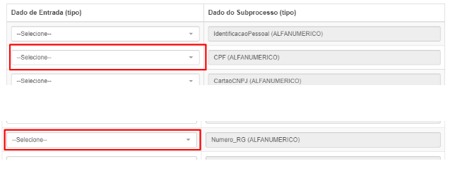 Para garantir que dados como CPF e RG sejam inseridos no processo, informe dentro do sub processo os campos que irão receber os dados de entrada na tarefa. Para isso siga o passo a passo abaixo: