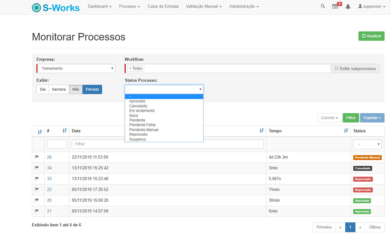 Essa tela é acessada pelo caminho Processo > Monitorar processos.
