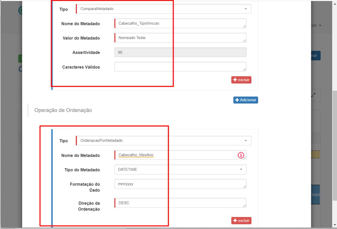 No exemplo existem 3 contracheques com este valor, porém, queremos localizar o documento mais recente. Logo será utilizada a função de ordenação para verificar todos os metadados, com o nome ‘Cabecalho_MesAno’, e localizar o mais recente, através da direção de ordenação DESC.