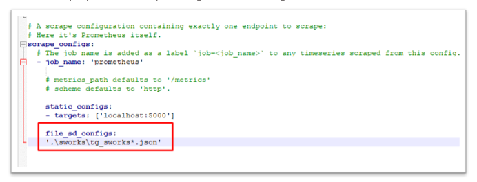 Essa configuração dirá ao Prometheus que obtenha os endpoints de métricas utilizando o arquivo gerenciado pelo Service Discovery.