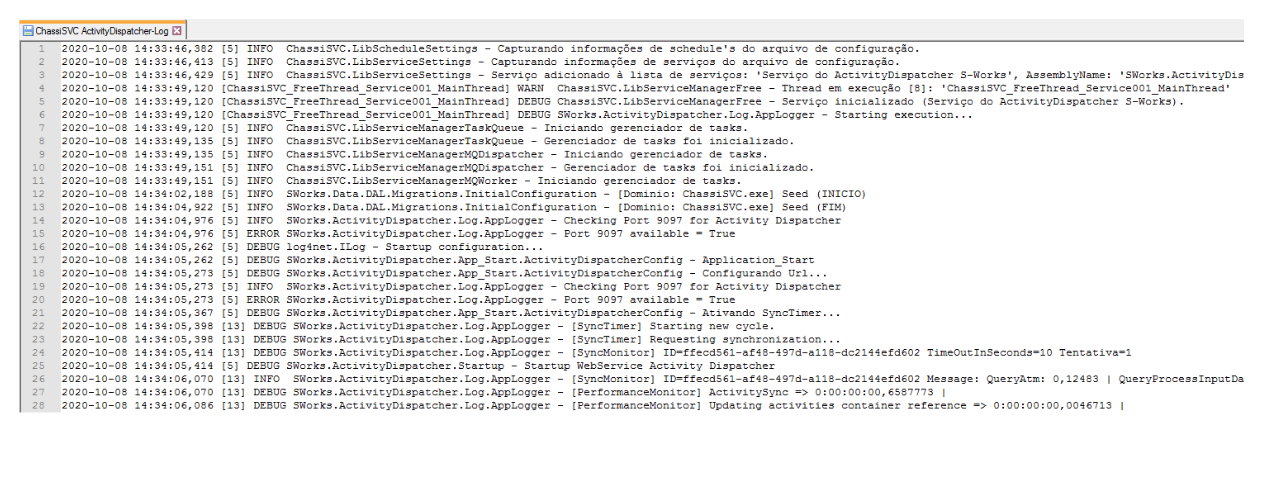 Figura 3 - Arquivo de log do ActivityDispatcher